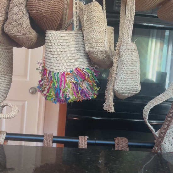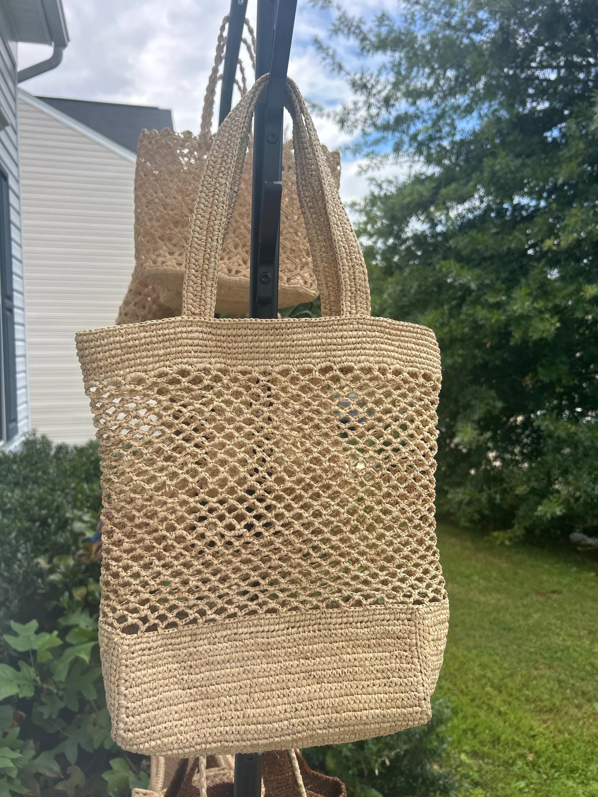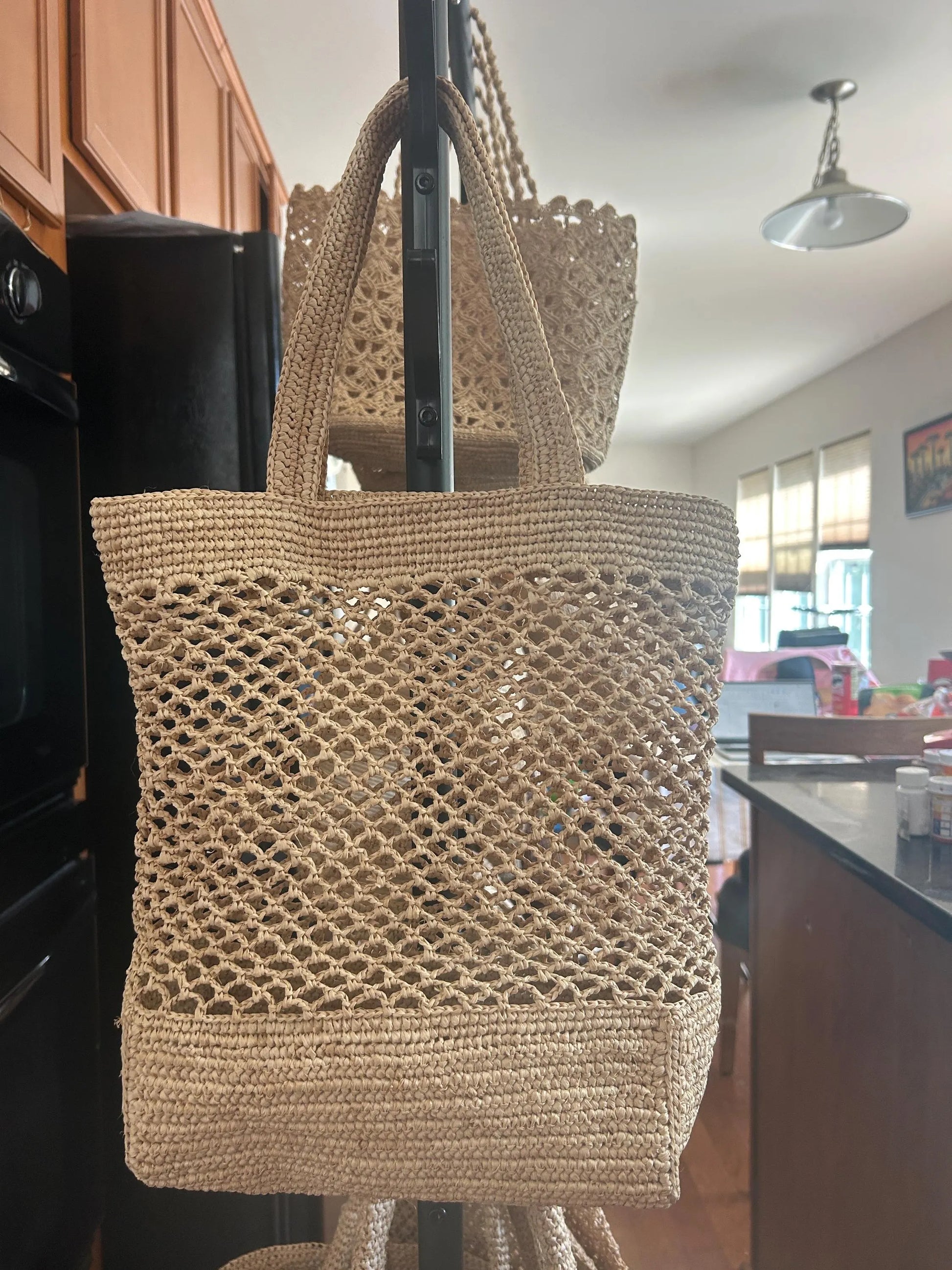 The "Arato" raffia shoulder bag net is a versatile accessory perfect for both beach days and city outings. Crafted from natural raffia, it is lightweight and breathable, making it easy to carry your essentials comfortably. Its shoulder strap offers hands-free convenience, blending practicality with casual style wherever you go.