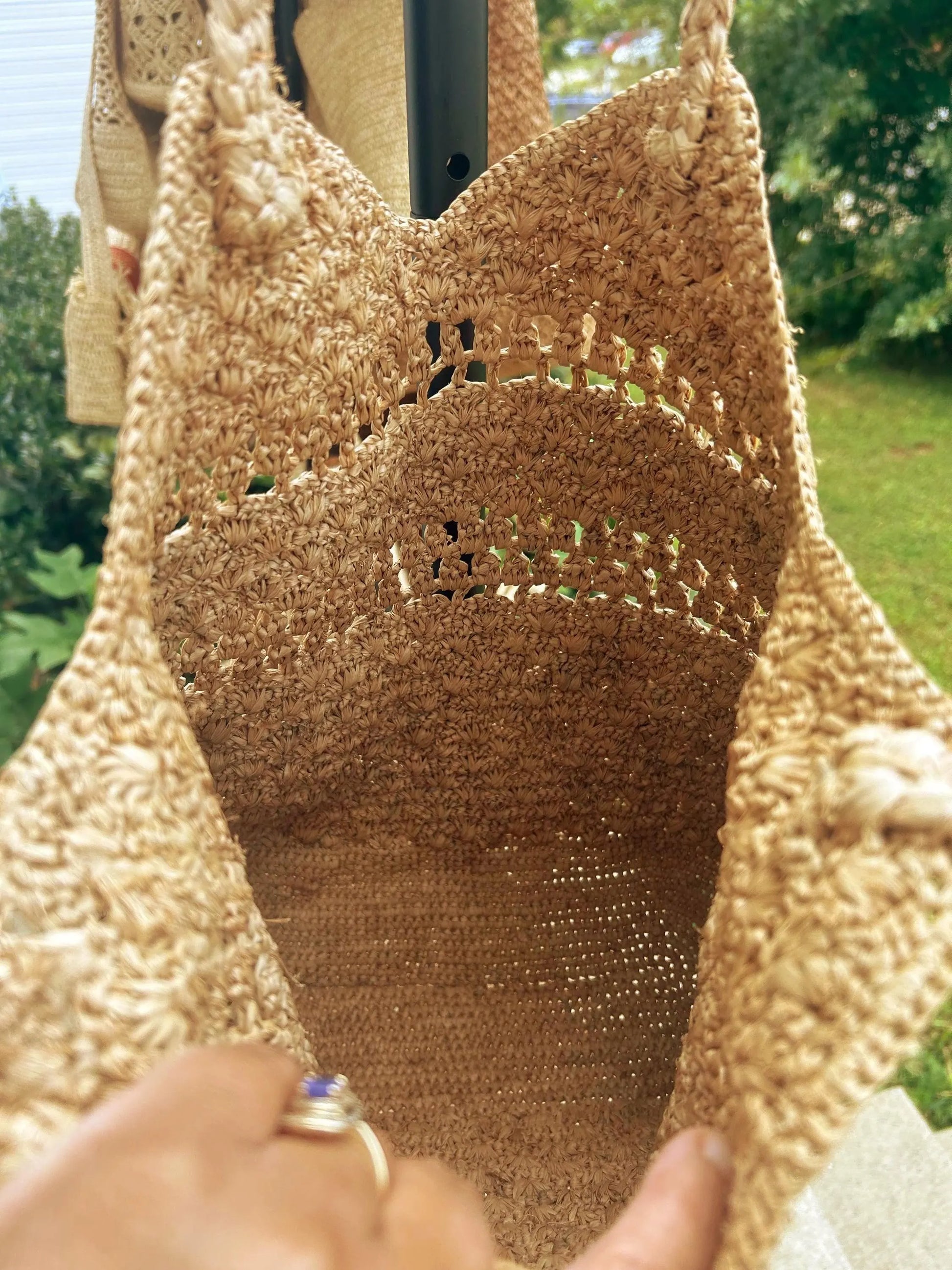 The Volana is a brown raffia bag designed with a braided strap for comfortable carrying. Its natural texture and earthy color make it a versatile accessory, perfect for everyday use or casual outings. Lightweight and stylish, it complements any outfit effortlessly.